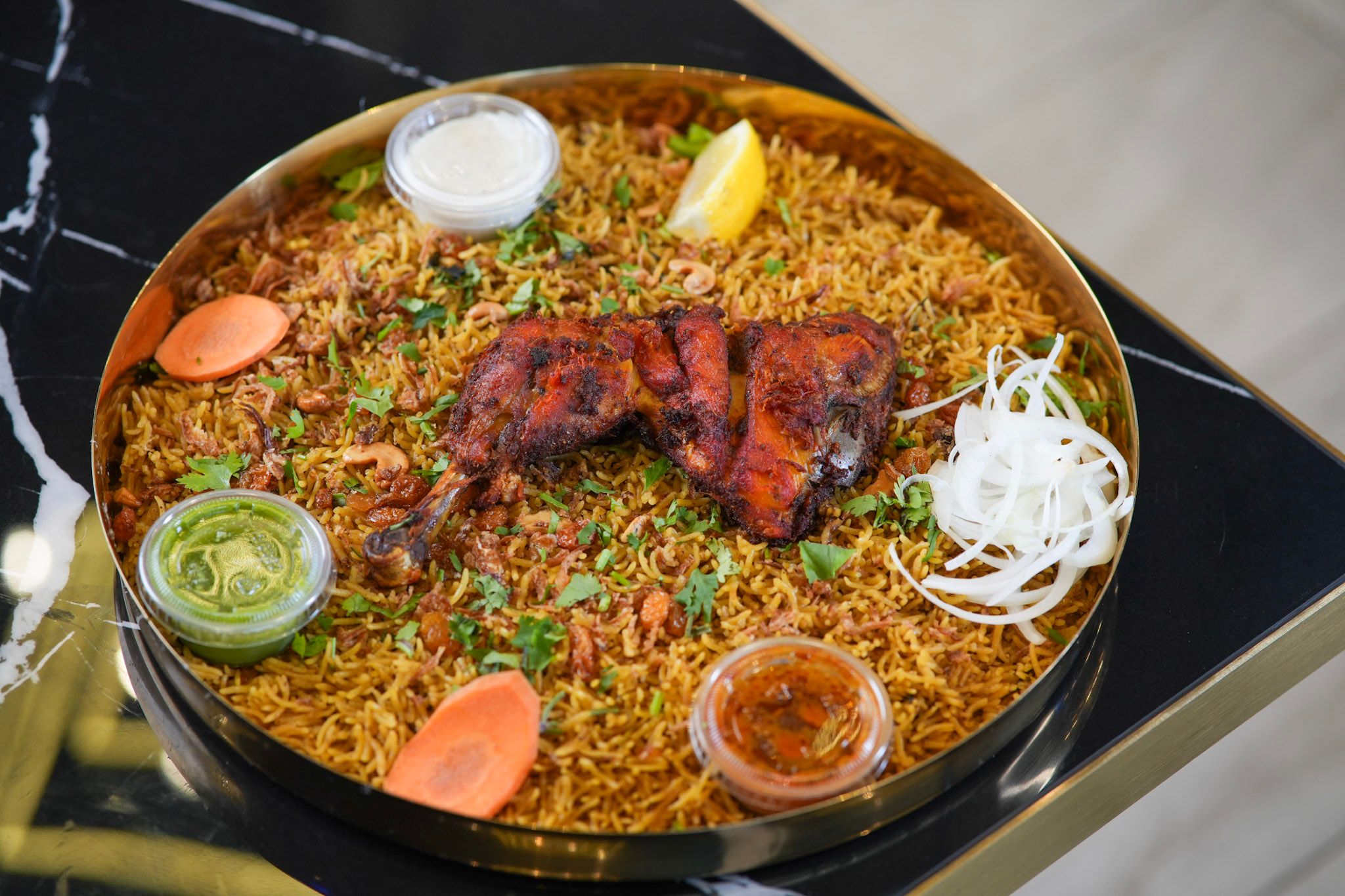 Aromatic Yemeni-style rice with succulent roasted chicken and rich mandi spices.